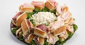 Cocktail Sandwiches and Cold Salad Buffet – $11.95 -Assorted pre-made cocktail Sandwiches of Ham and Swiss Cheese, Turkey, Bacon Avocado on Croissant, Roast Beef with Muenster Cheese, Vegetarian with Alfalfa Sprouts.